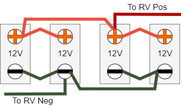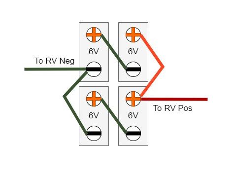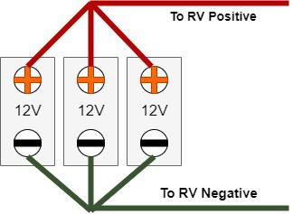 So if you’re working with 6-volt batteries, wire those into a 12-volt series or series-parallel configuration, and if they are 12-volt batteries keep them in a parallel configuration. Learn more: How to Wire RV Batteries