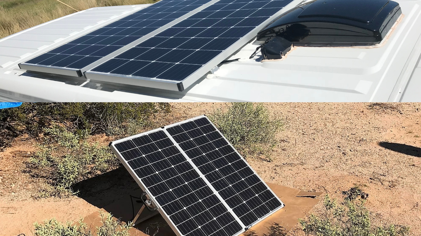 A portable solar system is a good option for light users who don’t want to modify their roof or RV. A rooftop mount solar system is good for those who don’t want to lug around a portable system, and who might need more power.